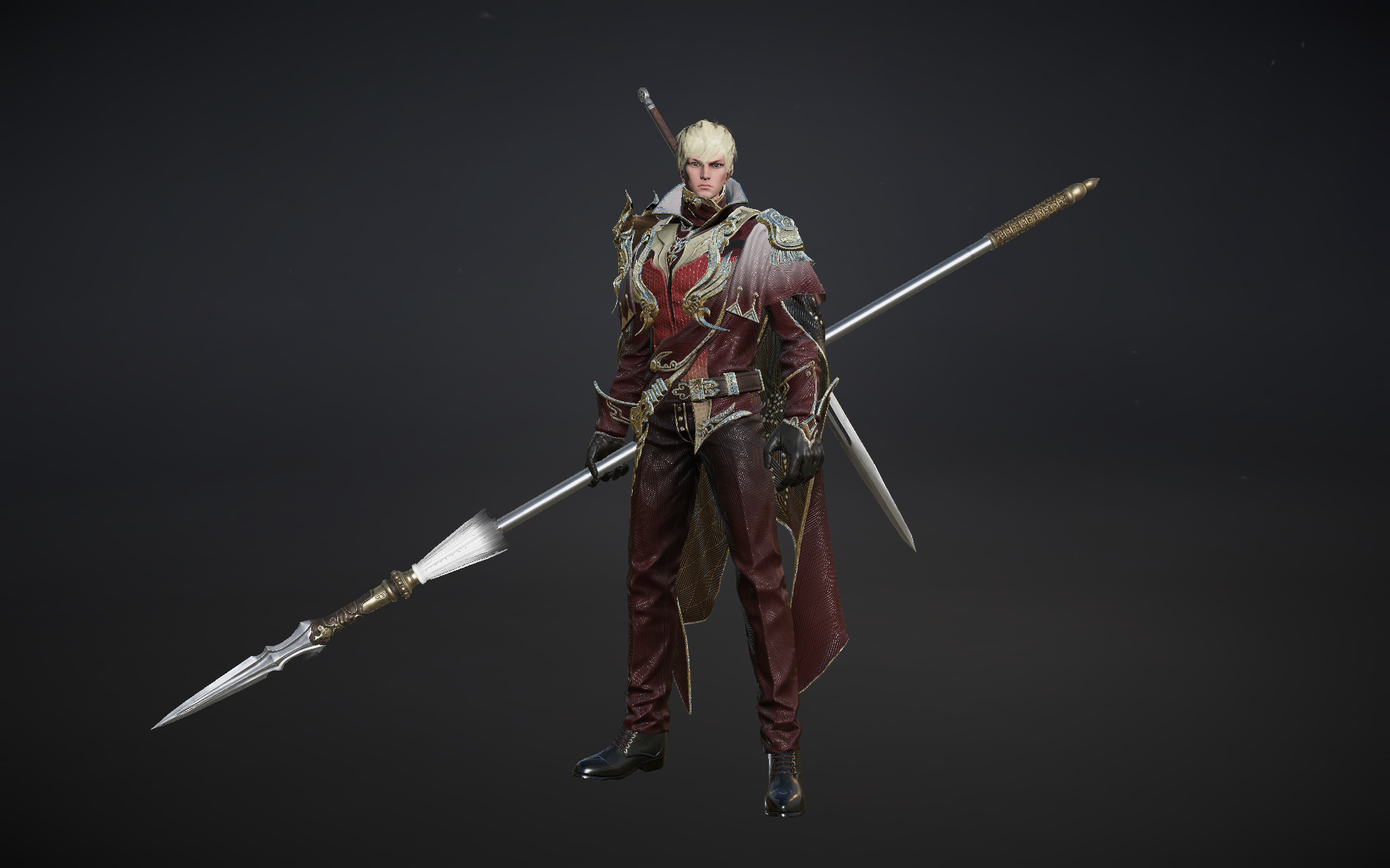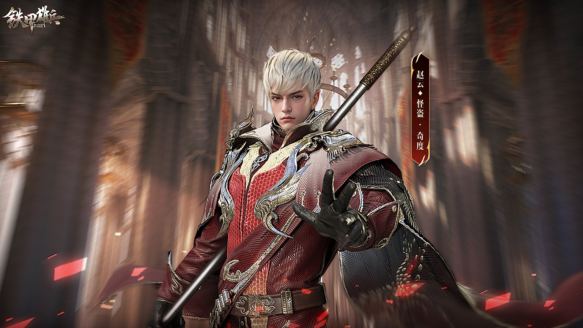 本次赵云活动皮肤,身着暗红配金纹的精致战服,手持长枪,肩背利剑,金发挺拔,尽显风范与优雅。