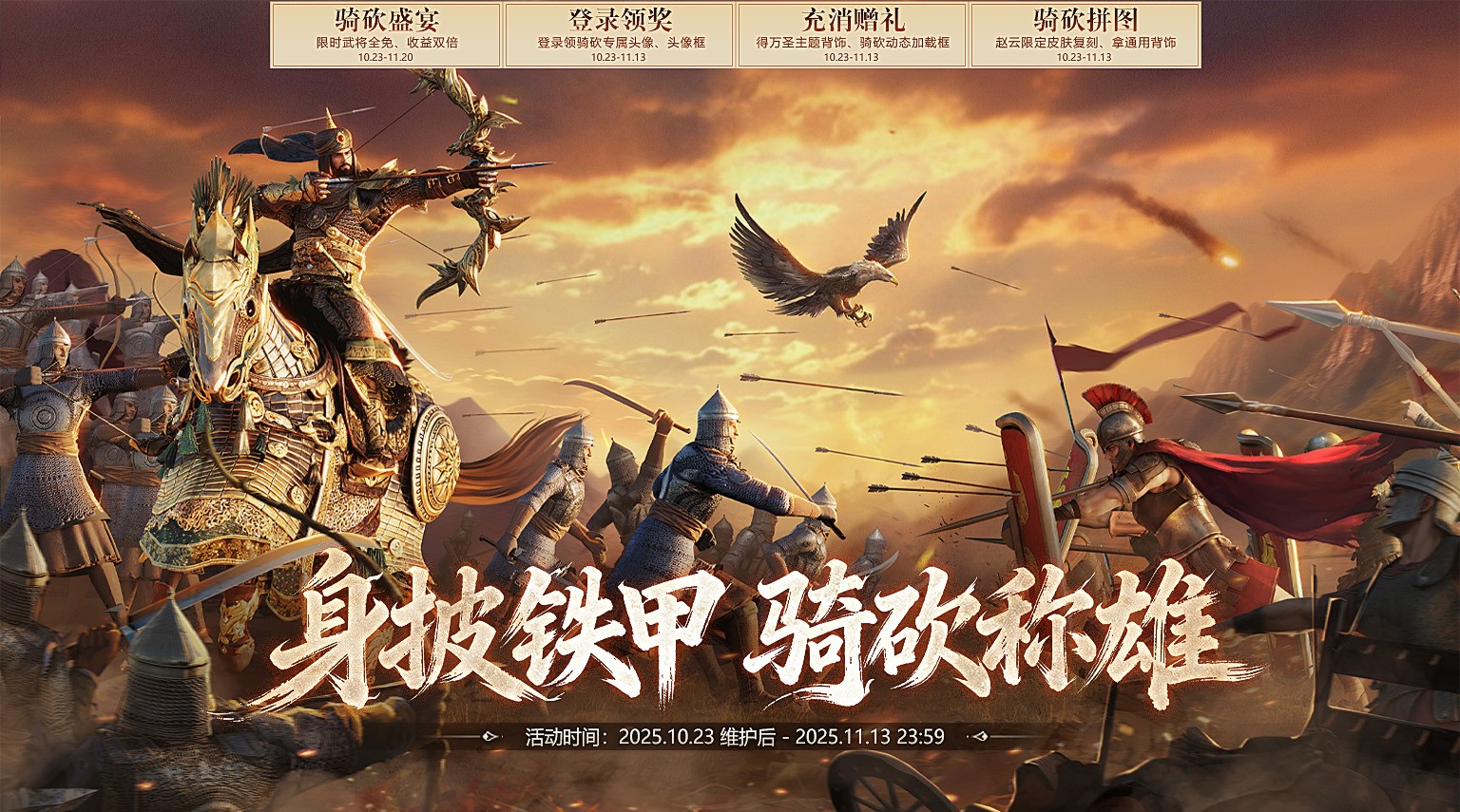 身披铁甲,骑砍称雄!2025骑砍节庆典即将于10月23日正式上线,豪华福利等你来!还有新武将、新赛季、新内容等超多惊喜!还在等什么,快和你的朋友们一起征战铁甲,享受骑砍的战斗魅力吧!