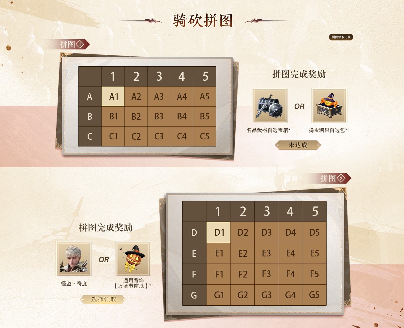 集齐一副拼图的所有碎片并且将其拼凑完整即可激活该拼图对应奖励,包含赵云活动皮肤【怪盗·奇度】、捣蛋糖果自选包、全新通用背饰【万圣节南瓜】。