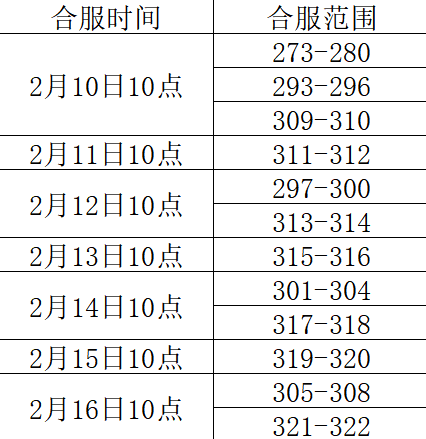 合服后区服活动时间将与主服一致。