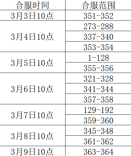 合服后区服活动时间将与主服一致。